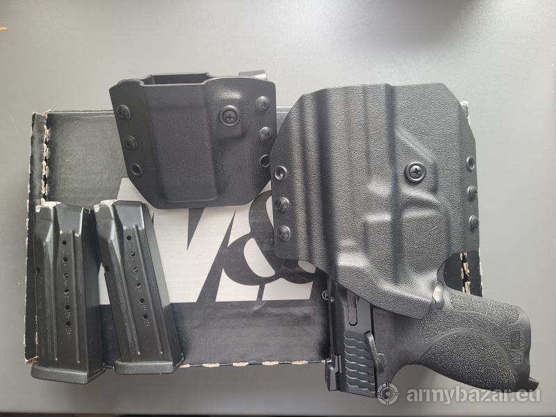 Opis: Pistolet S&W kal. 9 mm w bardzo dobrym stanie wraz z kabura i ładownica dedykowana do tego modelu oraz z całym wyposażeniem jakie daje producent. Pistolet jest na gwarancji do 03.2025