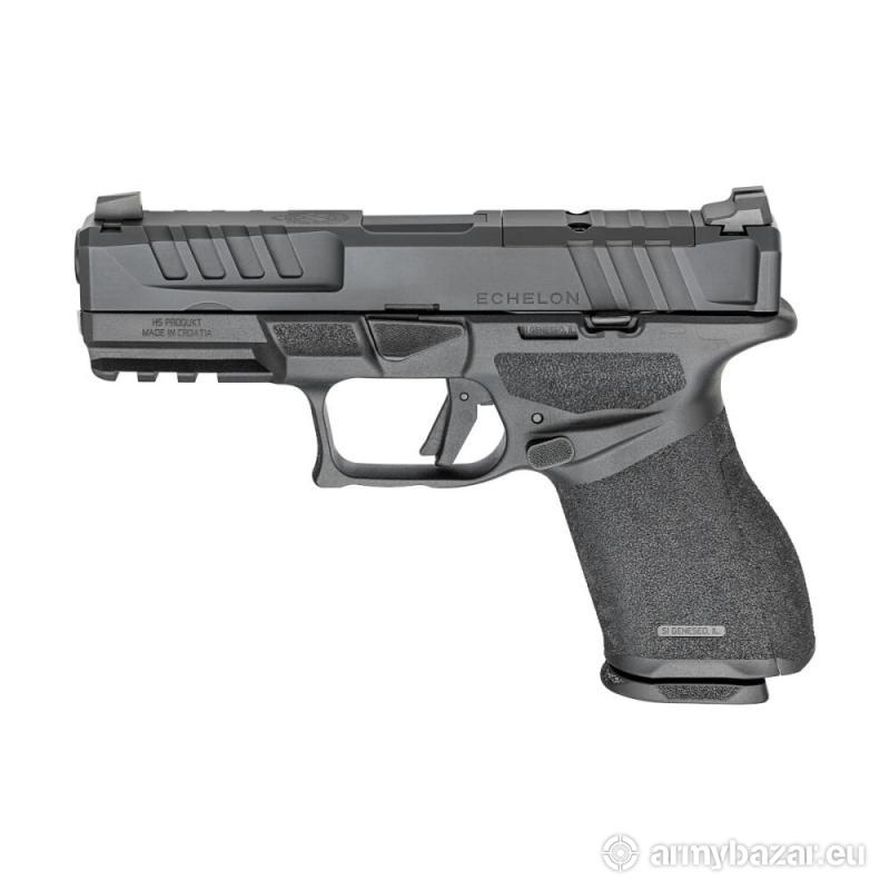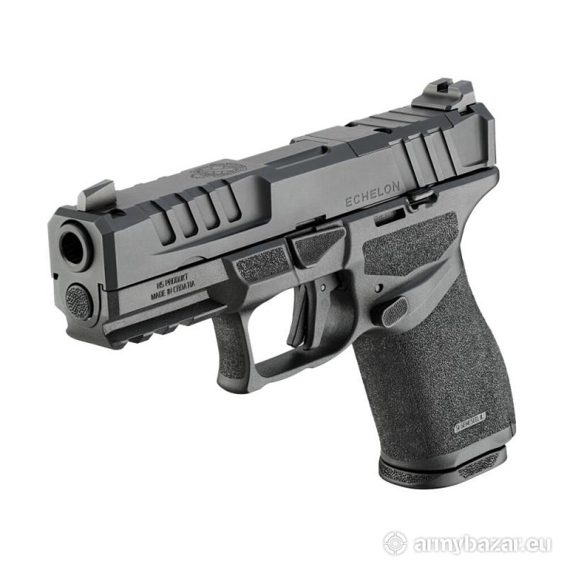 Opis: ECHELON mocno czerpie z innych przetestowanych konstrukcji, dodając do tego swoje pięć groszy. Pistolet został zaprojektowany zgodnie z najnowszymi trendami i standardami dlatego w standardzie uzyskujemy pełną obustronność konstrukcji, sercem pistoletu jest zupełnie nowy system szkieletu, który nie jest elementem polimerowego chwytu a nowatorski system montażu kolimatorów pozwala zamontować 30 modeli kolimatorów bezpośrednio na zamku. Dł. całkowita: 184,2mm; Wys. Całkowita: 131mm ( z magazynkiem 15 naboi ); Szer.chwytu: 30,48mm; Waga: 680 gr. W zestawie: magazynek 15 nab oraz magazynek 18 nab.
