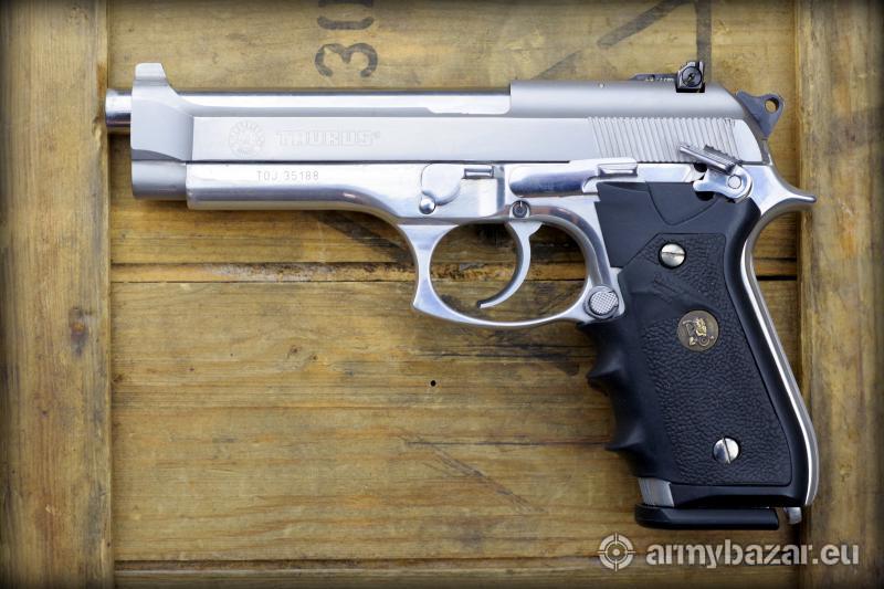 Opis: Taurus PT 99 AFS- brazylijska kopia Beretty 92 w wersji INOX z regulowaną szczerbinką. Pod względem jakości wykonania broń nie odbiega od włoskiego pierwowzoru. Pistolet używany w nienagannym stanie technicznym. W zestawie dwa, równie ładnie błyszczące magazynki.