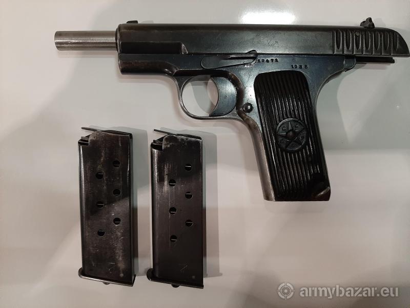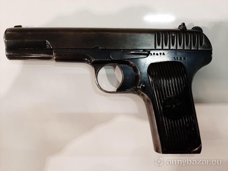 Opis: Witam mam do sprzedania dosyć rzadką wersję pistoletu TT wz.30 przedwojennej radzieckiej produkcji z 1935r. Stan wizualny broni przedstawiony na zdjęciach określam na dobry. Pistolet jest w 100% sprawny, zgodny numerycznie, stan lufy dobry gwint wyraźny. W komplecie 2 magazynki. - kaliber 7,62 x 25