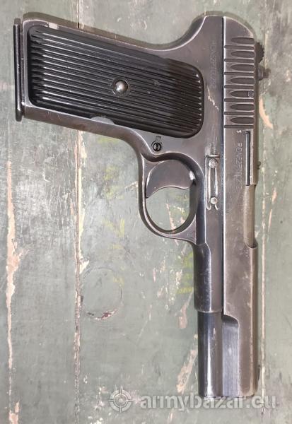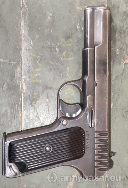 Opis: Oferujemy oryginalny pistolet samopowtarzalny TT (Tokariew) wyprodukowany w 1952 roku w Zakładach Metalowych „Łucznik” w Radomiu. Konstrukcja oparta na radzieckim modelu TT-33, ceniona za swoją niezawodność, prostotę oraz solidne wykonanie. Egzemplarz w bardzo dobrym stanie kolekcjonerskim, z zachowanymi oryginalnymi oznaczeniami i zgodnymi numerami seryjnymi na zamku oraz ramie. Broń kompletna, z klasycznymi bakelitowymi okładzinami chwytu i stalowym wykończeniem typowym dla produkcji z początku lat 50. Dane techniczne: Kaliber: 7,62×25 mm Tokarev Dł. całkowita: ok. 212 mm Długość lufy: ok. 116 mm Magazynek: 8 nabojów Rok produkcji: 1952 Producent: Zakłady Metalowe „Łucznik” – R