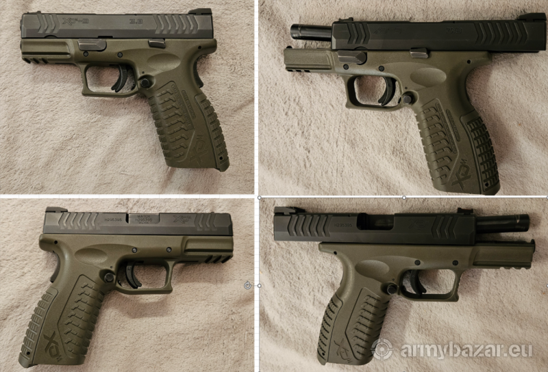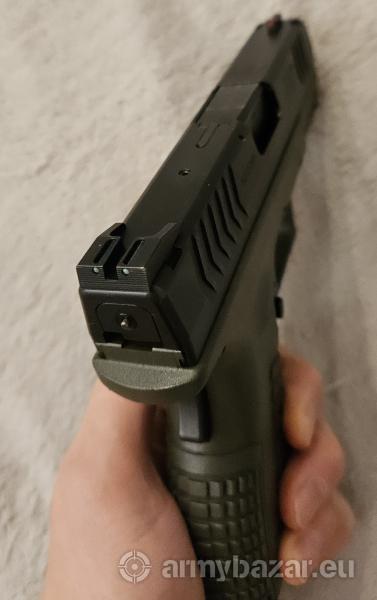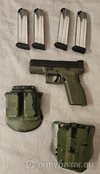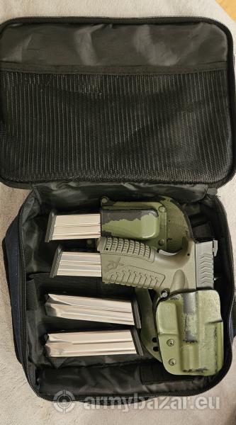 Opis: Sprzedam pistolet XDM-9 w kalibrze 9x19, lufa 3,8" (HS Product) Black / Green Świetna uniwersalna broń. Przebieg ok. 1000 kul. Stan mechaniczny bdb, wizualnie jak po wystrzeleniu kilkuset strzałów. Posiada wskaźnik naboju w komorze, wskaźnik napięcia iglicy, bezpiecznik chwytowy oraz spustowy. Wersja z krótszą lufą, idealny do noszenia na codzień. Doposażony w metalowe, światłowodowe przyrządy celownicze (z BUOS). W komplecie: 2 magazynki 19 nabojowe, okładziny chwytu (S, M, L), sztywna kabura z płetwą i kabura na 2 magazynki. Dodatkowo nakładka na magazynek 19 nabojowy do wersji Compact. Więcej zdjęć na maila. Pruszków. 507-809-20-jeden.