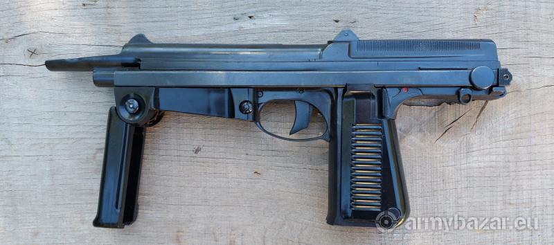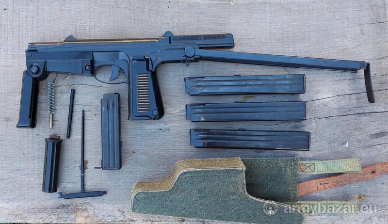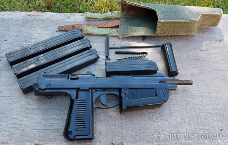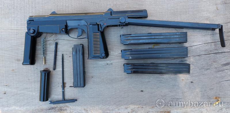 Opis: Pistolet Maszynowy wz.1963 PM-63 RAK kaliber 9x18 Makarowa Stan kolekcjonerski Opracowany w latach 60. XX wieku przez prof. P.Wilniewczyca. Broń przeznaczona dla załóg wozów bojowych, używana także przez jednostki Milicji. PM63 jest indywidualną bronią samoczynną. Zasada działania oparta jest o odrzut zamka swobodnego z opóźnionym ruchem powrotnym- strzela z zamka otwartego. W przedniej części zamka znajduje się tzw. łyżka, wystająca przed lufę- pełni także rolę osłabiacza podrzutu. Umożliwia ona również napięcie zamka jedną ręką poprzez naciśnięcie broni łyżką o twardą przeszkodę. Skład: PM63, kabura, 4 magazynki, olejarka, wycior, przecierak, amo Wymagana promesa (Grodzisk Maz.)
