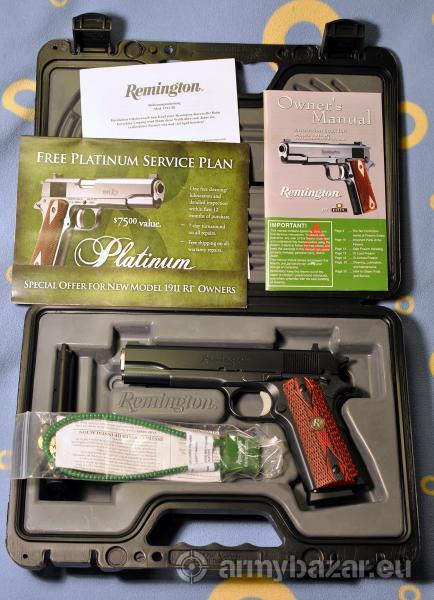Opis: Sprzedam pistolet Remington 1911R1 w kalibrze 45ACP. Stan idealny, wersja jubileuszowa na 100 lecie konstrukcji 1911, pełny fabryczny komplet, paiery, zapasowy magazynek, zabezpieczenie do broni i klucz do rozkładania konstrukcji pochodnych 1911. Zdjęcia przedstawiają sprzedawaną broń, tarcze ostrzelane z 25 metrów, zapraszam do sprawdzenia na strzelnicy.