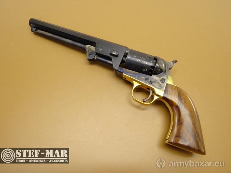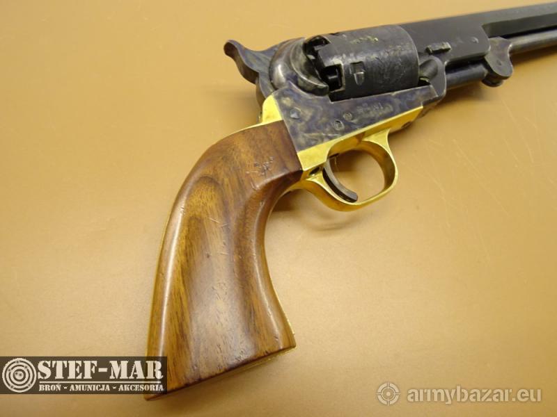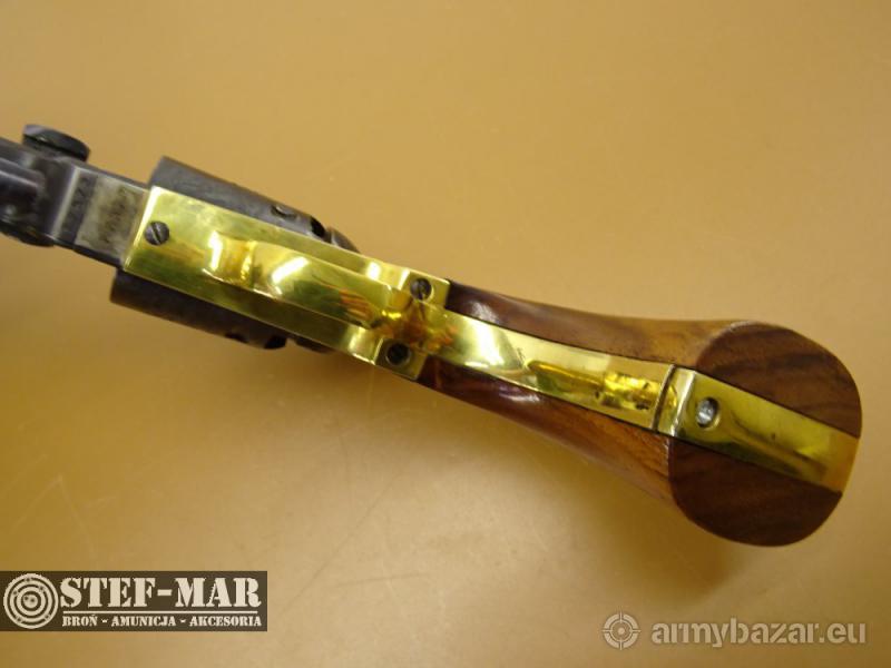 Opis: Rewolwer Euroarms Brescia Italy Mod. Navy, kal. .36 [T483] Broń używana, sprawna w 100%. Stan broni bardzo dobry. Posiada złocenia na ramie. Chwyt drewniany w bardzo dobrym stanie, bez uszkodzeń. Dostępna prezentowana sztuka, stan widoczny na szczegółowych zdjęciach. Oś-ok , Luz-0,20 Stan lufy jest bardzo dobry Broń po przeglądzie rusznikarskim. Dane techniczne broni: - kaliber: .36 - rok produkcji: 1980r. - długość całkowita: 330mm - długość lufy: 190mm (7") - waga: 1190g Do broni dołączam fakturę VAT marży. W razie pytań proszę dzwonić właściciel 501 682 999, biuro 516 904 226