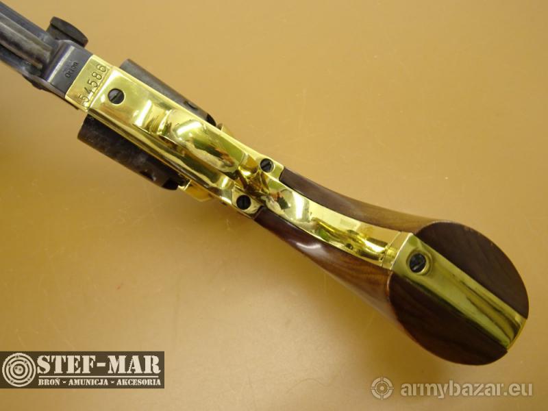 Opis: Rewolwer Hege-Uberti mod. 1861 REB NORD, kal. .36 [T552] Broń używana, sprawna w 100%. Stan broni bardzo dobry. Posiada złocenia na ramie oraz zdobienia na bębenku. Chwyt drewniany w bardzo dobrymj stanie, bez uszkodzeń. Oś -ok. Luz -0,05. Kaliber .36 Stan lufy jest bardzo dobry Broń po przeglądzie rusznikarskim. Dane techniczne broni: - kaliber: .36 - rok produkcji: 1975r. - długość całkowita: 330mm - długość lufy: 190mm (7") - waga: 1238g Do broni dołączam fakturę VAT marży. W razie pytań proszę dzwonić właściciel 501 682 999, biuro 516 904 226