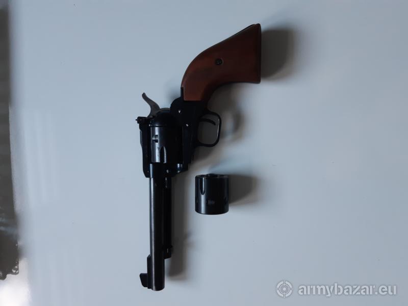 Opis: Rok produkcji 93. Jestem drugim właścicielem. Rewolwer posiada dwa bębenki 22 Magnum i 22 lr na jedną promesę.