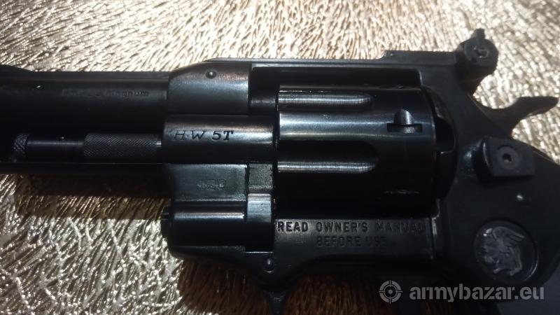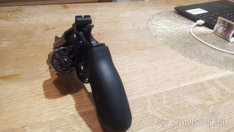 Opis: Rewolwer zarejestrowany na amunicje .22WMR/.22LR. .22LR nie każdą lubi. wystrzelane przeze mnie ok 100szt. Stan oceniam na 4+, Lufa 5. Do rewolweru dodaje 50szt amunicji .22WMR. Broń idealna dla niewiasty - praktycznie brak podrzutu/odrzutu.