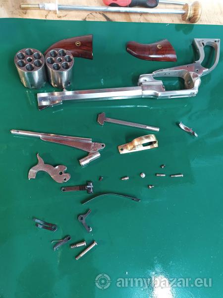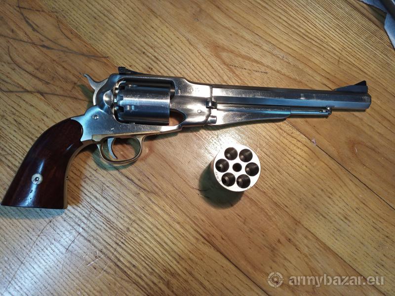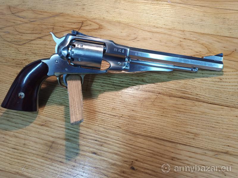 Opis: Stan super, strzela pięknie, dobre skupienie, Nierdzewny przetrwa lata i nie trzeba tak uważać jak w zwykłych ,wyprzedaje swoją kolekcję ew. zamienię na karabin Smith z dopłatą. Bez pozwolenia, tylko na dowód osobisty ,Strzelałem celnie na 50m, Spokojnie przebija metalową blachę/deskę. Rewolwer Remington New Model Army Target w wersji ze stali nierdzewnej z lufą o długości 8'' 'Szczerbinka regulowana w poziomie i pionie. Dane techniczne: Kaliber.44-Waga 1,2 kg -Długość lufy 8'''