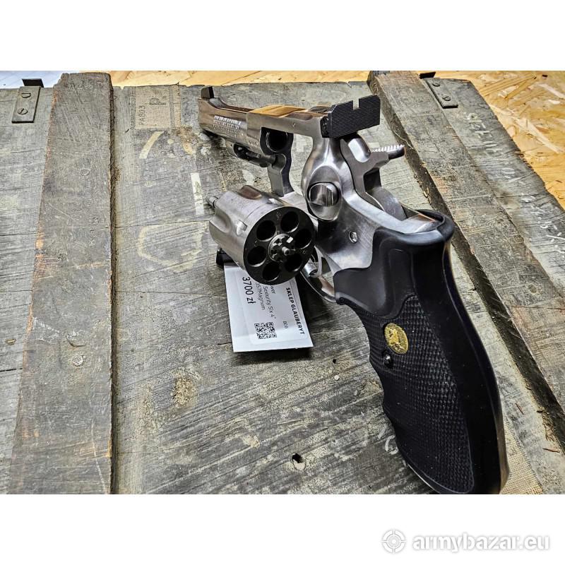 Opis: Na sprzedaż rewolwer Ruger model Seciurity Six zasilany mocnym nabojem .357 magnum (możliwość zasilania również słabszymi nabojami .38 special). Wyprodukowany w USA, wykonany ze stali nierdzewnej (INOX). Bębenek 6-cio nabojowy, lufa 70 mm. Posiada gumowany, ergonomiczny chwyt, zapewniający pewność prowadzenia ognia silnym nabojem typu Magnum. Solidna, sprawdzona i niezawodna konstrukcja! Pracuje w trybach SA/DA (zarówno z ręcznym napięciem jak i z samonapinaniem kurka). Egzemplarz w stanie bardzo dobrym! Dostawa na terenie całego kraju!