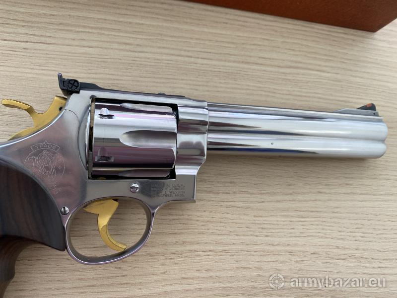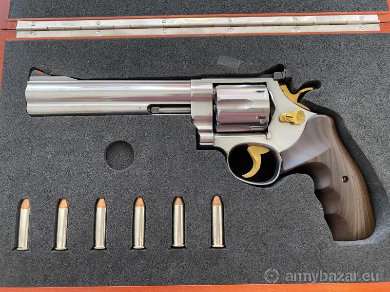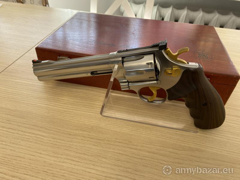 Opis: Sprzedam jak w temacie REWOLWER S&W 629-3 KAL. 44 MAG LUFA 6" WERSJA JUBILEUSZOWA KOLEKCJONERSKA Z roku 1993 polerowana błyszcząca , fabryczny tuning pozłacany spust, kurek jak na foto . Kaliber 44 magnum. Stan bardzo dobry mało strzelany !!! Komplet jak na zdjęciu. Oryginalne drewniane pudełko i atrapy pocisków .Telefon 609869447. Jeśli czytasz to ogłoszenie na pewno jest aktualne po sprzedaży zostanie usunięte!!!Dodatkowe zdjęcia na życzenie! Jeśli jesteś zainteresowany zadzwoń zaproponuj swoją cenę porozmawiamy, Wyprzedaż kolekcji .