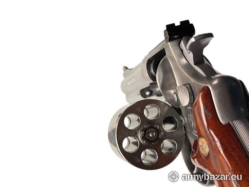 Opis: Rewolwer Smith & Wesson 627-0 w kalibrze .357 Magnum to masywna i bardzo solidna konstrukcja oparta na dużej ramie N-Frame, zaprojektowanej do intensywnego użytkowania i dużych obciążeń. Model 627 wywodzi się z linii rewolwerów służbowych i sportowych S&W, cenionych za precyzję wykonania, płynną pracę mechanizmu oraz wysoką trwałość. Rewolwery tej klasy były wykorzystywane przez amerykańskie formacje policyjne i służby specjalne, a także chętnie wybierane przez strzelców sportowych. Oferowany egzemplarz w stanie dobrym plus, mechanicznie w pełni sprawny, zadbany, z normalnymi oznakami użytkowania zgodnymi z wiekiem. Broń można obejrzeć w Fortguns obok Dęblina. Kontakt: 666 366 361