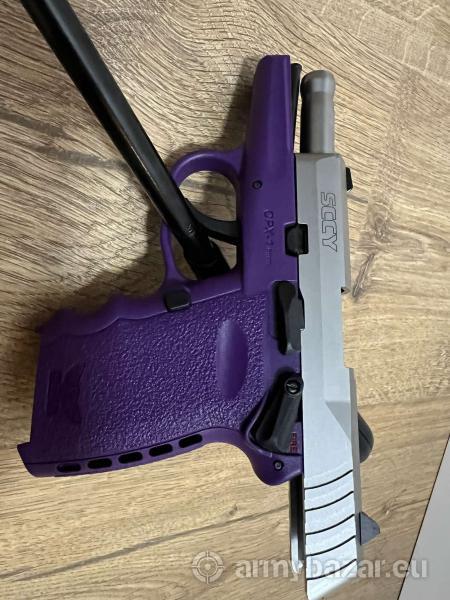 Opis: Pistolet SCCY z przebiegiem koło 100 szt. DANE TECHNICZNE: Kaliber: 9x19 Magazynek: Dwurzędowy o pojemności 10 naboi Waga: 425 g Szerokość: 254 mm Wysokość: 101 mm Długość: 145 mm Długość lufy: 79 mm Opole