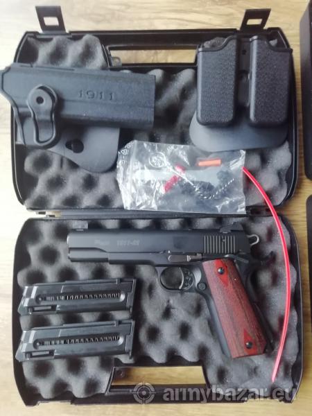 Opis: Kabura, ładownica, dwa magazynki, wyposażenie jak przy zakupie, instrukcja, zbijak, itd., jak na zdjęciu. Mało używany.