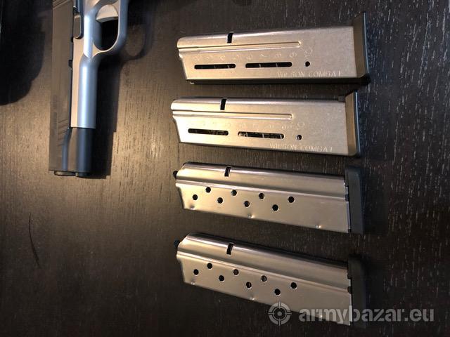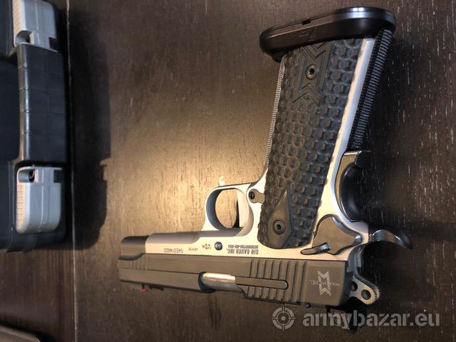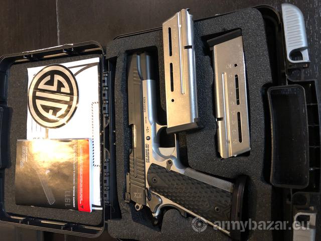 Opis: Sprzedam pistolet Sig Sauer 1911 Max, kaliber 9mm z kompletem 4 magazynków. 2 standardowe oraz 2 akcesoryjne firmy Wilson Combat. Pistolet niewiele używany.