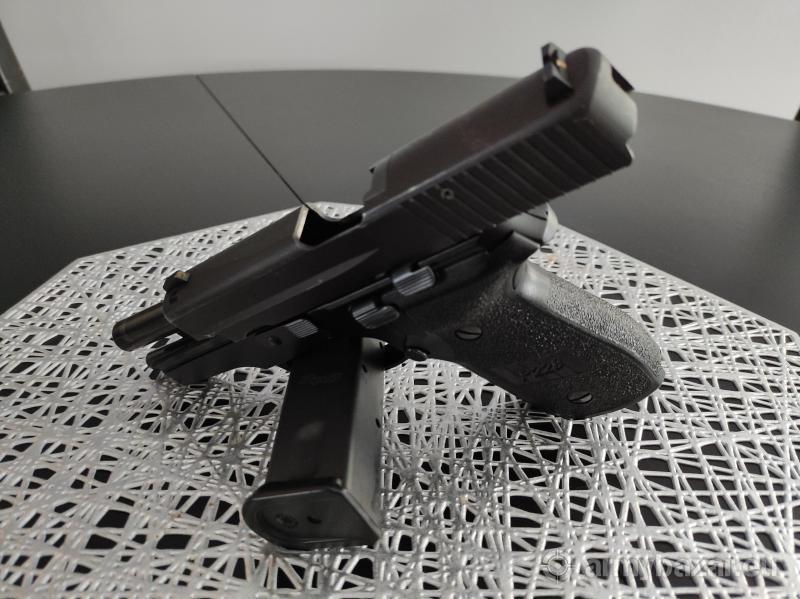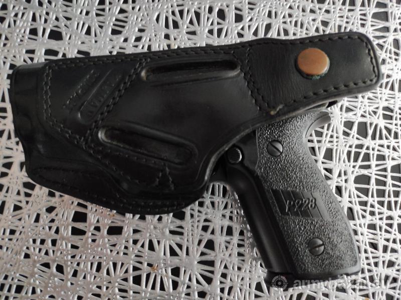 Opis: Mało strzelany pistolet, stan bardzo dobry. Świetny spust. Zestaw zawiera skórzaną kaburę. Kaliber: 9 mm Nabój: 9x19 Parabellum Mechanizm spustowy: z samonapinaniem Pojemność magazynka: 13 nabojów Ryglowanie: przekoszenie lufy Masa: 830 g Długość: 180 mm Długość lufy: 98 mm Ogranicznik ruchu spustu: brak Celownik: stały Długość linii celowniczej: 145 mm Bezpieczniki nastawne: zwalniacz kurka z lewej strony szkieletu Bezpieczniki wewnętrzne: ząb zabezpieczający, blokada iglicy Zatrzask zamkowy: z lewej strony szkieletu Zatrzask magazynka: na lewej stronie szkieletu, za kabłąkiem Materiał: szkielet ze stopu lekkiego, zamek ze stali nierdzewnej Okładziny chwytu: plastikowe