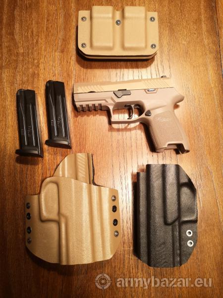 Opis: Sprzedam pistolet Sig Sauer P320 Compact w kolorze coyot. Sprzedaję jako zestaw z dwoma kaburami (zewnętrzną i wewnętrzną) , ładownicą na dwa magazynki oraz dodatkowym trzecim magazynkiem. Widoczne ślady noszenia.