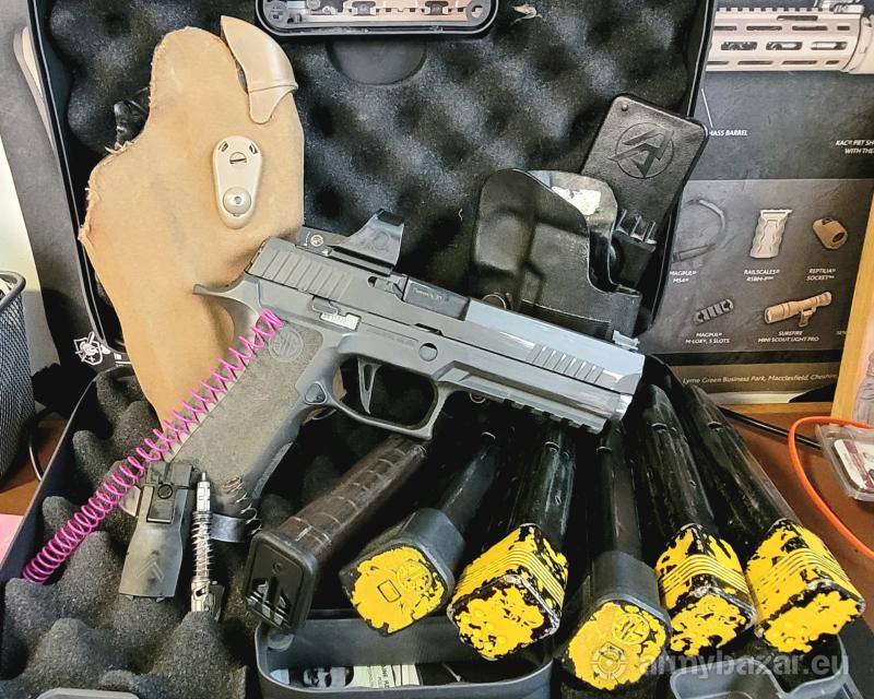 Opis: Modyfikacje: Zmieniony spust (lżejszy plus krótszy reset). Powiększona dźwignia zrzutu magazynka ( Oryginał z USA50$). W komplecie 5 magazynków 21 szt (340 zł/szt.) plus szósty plastikowy w gratisie (nadaje się do Dryfire). Kolimator Romeo 1 Pro 6 MOA. 2 sprężyny powrotne (nowe) od EEMANN tech 10 i 12 LBS Nowa zapasowa iglica plus dodatkowa sprężyna Iglicy. Zamek plus lufa są nowe ( mniej niż 1000 szt. więcej manuala stąd otarcia). Chwyt ma około 7000 tyś szt. (więcej manuala). Kolimator około 5tys szt. Dodatkowo mogę odsprzedać 2 kabury (Safariland DDA). dwa nowe magi 21 szt oraz nowy (taki sam) kolimator. Wartość zestawu: 14000. Mazowieckie 5159376cztery5