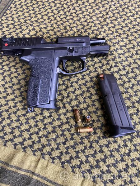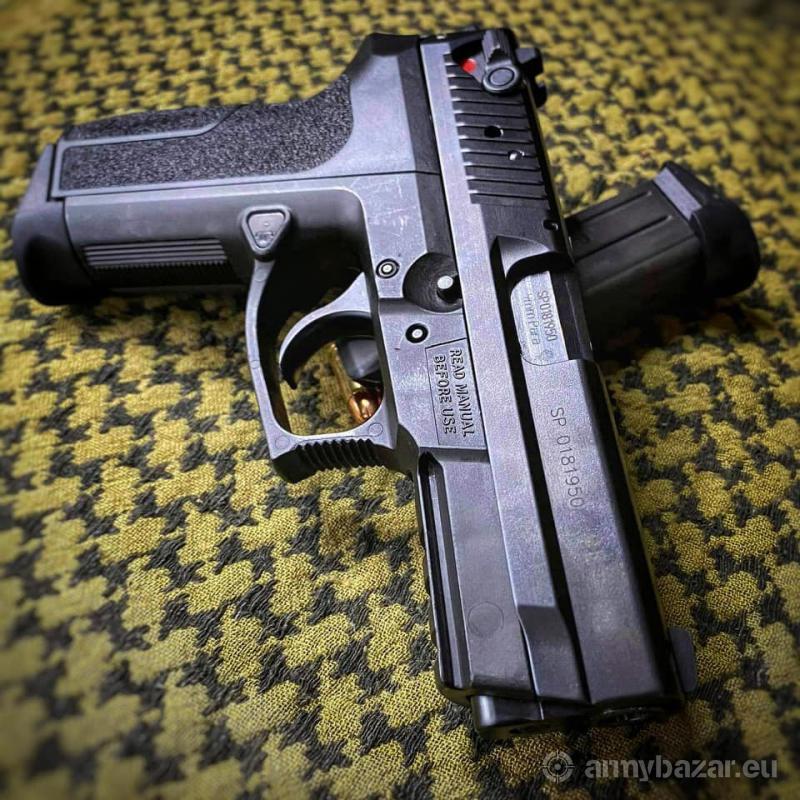 Opis: Sig Sauer SP2022M kaliber 9x19 z fabrycznym ukompletowaniu z dwoma magazynkami i kaburą DOUBLETAP. Przebieg około 350 strzałów.