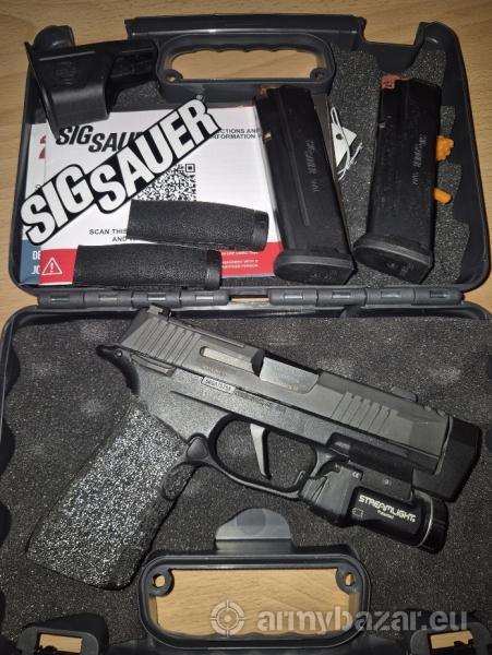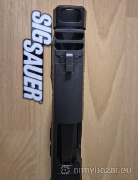 Opis: Na sprzedaż unikatowy Sig Sauer XMacro Comp z dolożonym drugim kompensatorem od Vantage Point Armory zmyślnie montowanym przez śrubę mocujacą Streamlighta TLR-7 SUB. Dzięki temu pistolet stoi w miejscu niczym dociążony full size, a nadal mamy zamontowaną porządną 500lm latarkę. Bezpiecznik nastawny, przebieg koło 200, nie podszedł mi kąt chwytu. Elegancka, futurystyczna klamka do opanowania w dwa magazynki przez każdego. W zestawie komplet od producenta jak na zdjęciu, do dogadania holosun 407k na niego. Mogę też sprzedać wszystko osobno. Krk/Kato tel 537 128 667