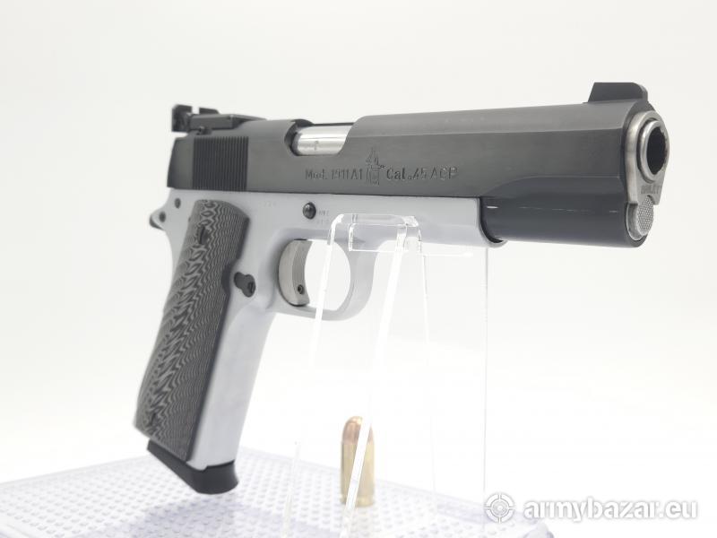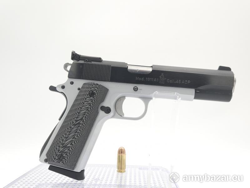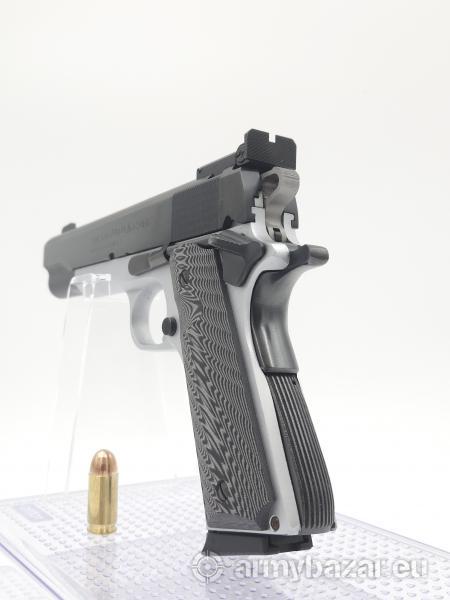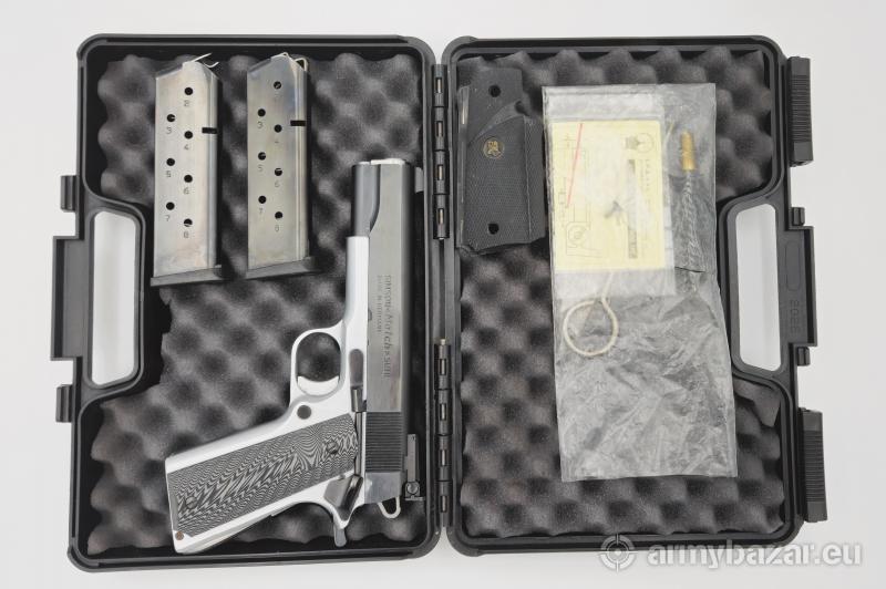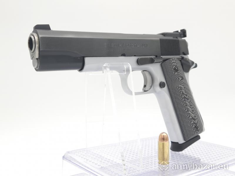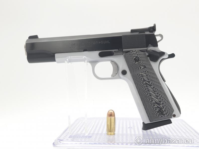 Opis: Simson Suhl 1911 A1 Match .45 ACP. Ręcznie pasowany, nietuzinkowy, limitowany do 500 sztuk produkcji pistolet sportowy. Bardzo celna konstrukcja. Broń opisana w http://www.alfacharlie.pl/index.php?option=com_content&view=article&id=546:pistolet-simson-suhl-1911-a1 . Stan bardzo dobry, działanie bez zarzutu. W razie pytań zapraszam do kontaktu 607-280-666.