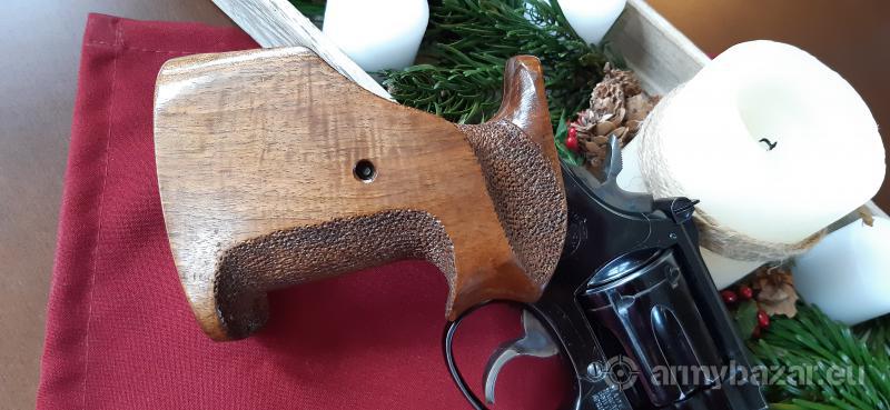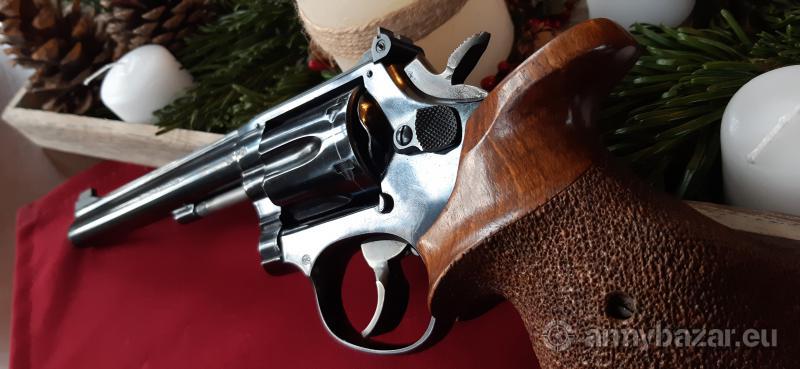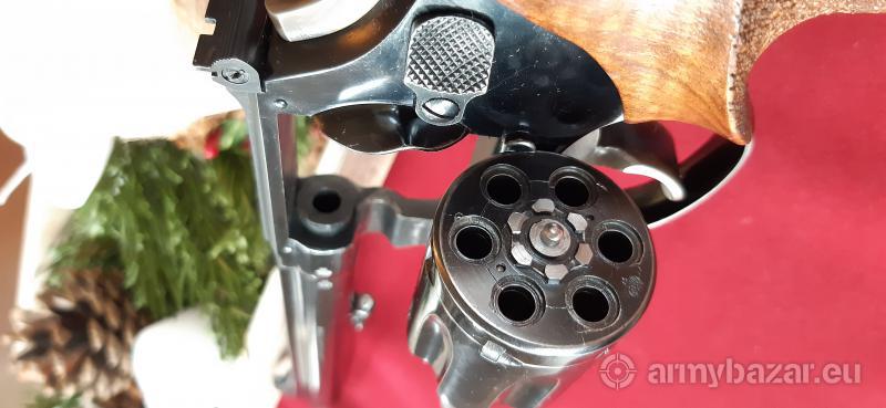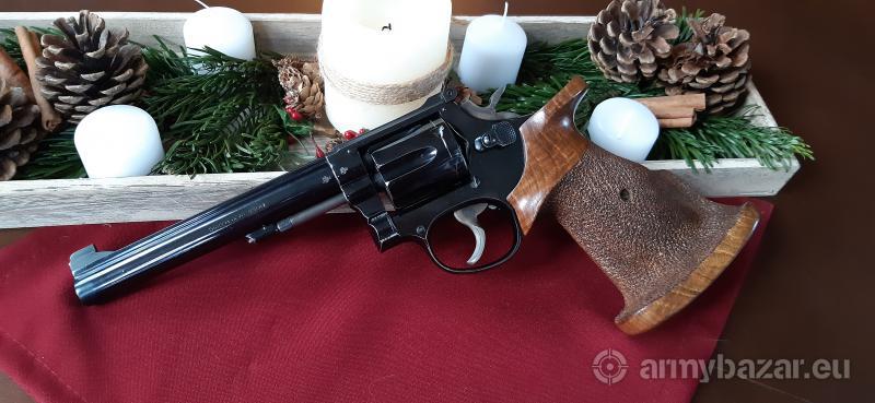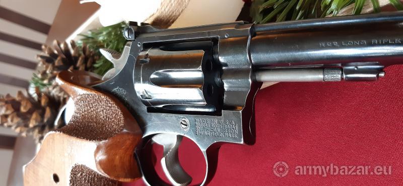 Opis: Rewolwer S&W w kalibrze 22lr. Broń bardzo celna. Sportowa rękojeść dla leworęcznych ale da się strzelać też prawą. Spust bardzo delikatny jak przypada na sportową broń. Regulowana szczerbinka. Ktoś go nosił w kaburze i ma kilka przetrać na oksydzie, stąd widoczne na lufie przebarwienie. Mechanicznie igła. Dobry do nauki strzelania. Legnica. W razie pytań proszę o sms: 667297979.