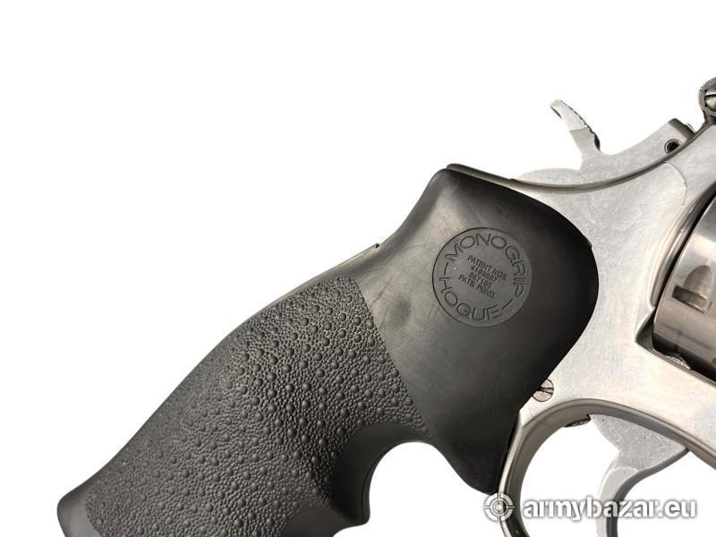 Opis: Smith & Wesson 686-3 w kalibrze .357 Magnum to klasyczna i niezwykle trwała konstrukcja oparta na ramie L-Frame, zaprojektowanej do intensywnego użytkowania. Model 686 był wykorzystywany przez liczne amerykańskie formacje policyjne, ceniony za wytrzymałość, precyzję oraz pewną pracę mechanizmu. Oferowany egzemplarz wyposażony jest w ergonomiczne okładziny Hogue, które poprawiają chwyt i komfort strzelania. Stan bardzo dobry minus – broń zadbana, mechanicznie w pełni sprawna, z normalnymi oznakami użytkowania adekwatnymi do wieku. Bardzo dobra propozycja zarówno do kolekcji, jak i dla miłośników klasycznych rewolwerów S&W. Broń można obejrzeć w Fortguns. Kontakt: 666 366 361