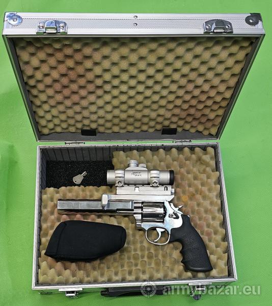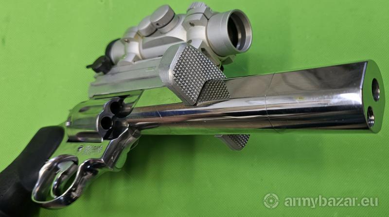 Opis: Precyzyjne wykonany rewolwer, w całości ze stali nierdzewnej. Broń idealna do precyzyjnego strzelania. Lufa w tulei wzmacniającej, z kompensatorem podrzutu. Dedykowany montaż przyrządów optycznych z systemem umożliwiający chwyt drugą ręką oraz niezależną regulację poziomą celownika. W komplecie bardzo dobry japoński kolimator Tasco Pro Popint z regulowaną średnicą wyświetlanej kropki oraz solidny kufer z kluczykiem. Wszystko w doskonałym stanie, oczywiście lufa nieskazitelna. Sprzedaż wyłącznie dla osób/podmiotów uprawnionych zgodnie z obowiązującym prawem. Odbiór wyłącznie osobisty. Na życzenie bezpłatna dostawa do klienta. Tel. 512 306 160. Szczegóły na www. BronAmunicja.pl