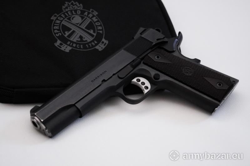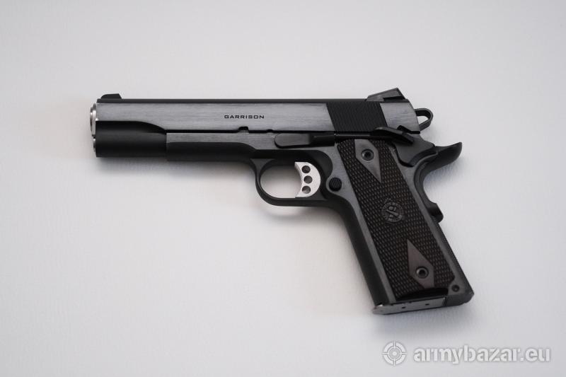 Opis: Springfield Armory 1911 Garrison w kalibrze 9×19mm. Stan bardzo dobry - niemal jak nowy, przewód lufy w stanie idealnym, bez wad i uszkodzeń. Widoczne nierównomierności koloru oksydy pochodzą od pozostałości oleju do broni i efektu lampy błyskowej. Posiada znakomite spasowanie elementów oraz dbałość o najdrobniejsze detale jak powiększony beavertail i ramię bezpiecznika, lekki spust i kurek szkieletowy oraz współczesne przyrządy celownicze Novak's 3-dot. Całość pozostaje wierna standardowi 1911. Pełny komplet sklepowy (pudełko, papiery, pokrowiec, kłódka, brelok) oraz dodatkowo stojak na pistolet. Odbiór osobisty w Lublinie, Łodzi, Warszawie lub do dogadania ;)