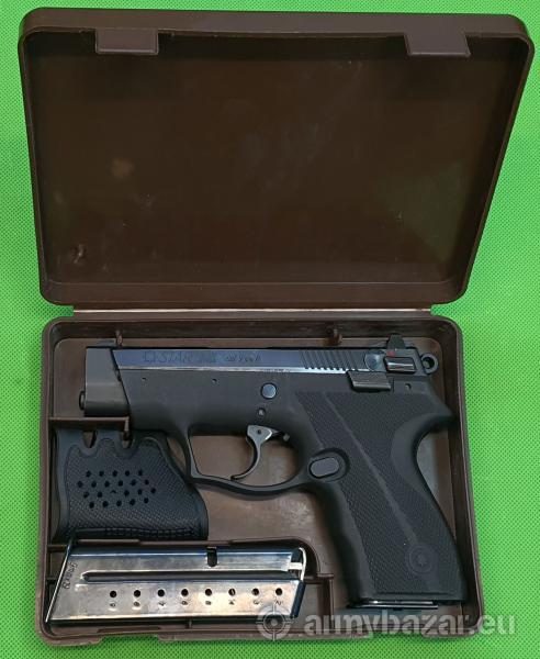 Opis: Precyzyjnie wykonany, hiszpański pistolet kompaktowy. Zamek jak w CZ 75 pracuje wewnątrz szkieletu, co zdecydowanie poprawia celność i stabilizuje całą konstrukcję. Pistolet ma polimerowy szkielet i wyposażony jest w obustronną dźwignię bezpiecznika, pełniącą zarazem funkcję decocera. Oferowany egzemplarz jest w doskonałym stanie technicznym, w 100% oryginalny i zgodny numerycznie. W ukompletowaniu: dwa magazynki, gumowa nakładka chwytu oraz oryginalne pudełko. Sprzedaż wyłącznie dla osób/podmiotów uprawnionych zgodnie z obowiązującym prawem. Odbiór wyłącznie osobisty. Na życzenie bezpłatna dostawa do klienta. Tel. 512 306 160. Szczegóły na www. BronAmunicja.pl