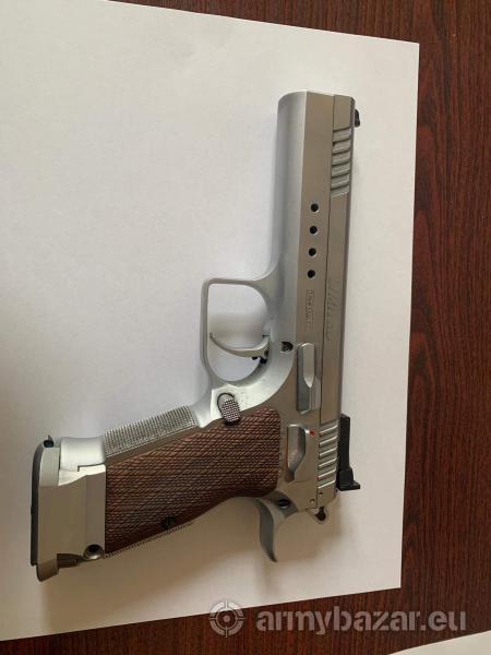Opis: Sprzedam Tanfoglio LIMITED 40HC z 2012r kaliber 40SW. Stan bardzo dobry, aktualnie do odebrania z depozytu. Wysokiej klasy pistolet sportowy do strzelań dynamicznych IPSC w klasie Standard. Posiada grubą stożkową poligonalną lufę, szkielet przystosowany do montażu celownika kolimatorowego, lejek(rozszerzona dolna część chwytu) do szybkiej wymiany magazynka, dodatkową muszkę światłowodową, mechanizm spustowy SA, regulowaną szczerbinę, drewniane okładziny chwytu, 2 dodatkowe sprężyny powrotne.