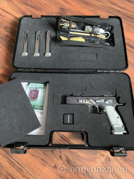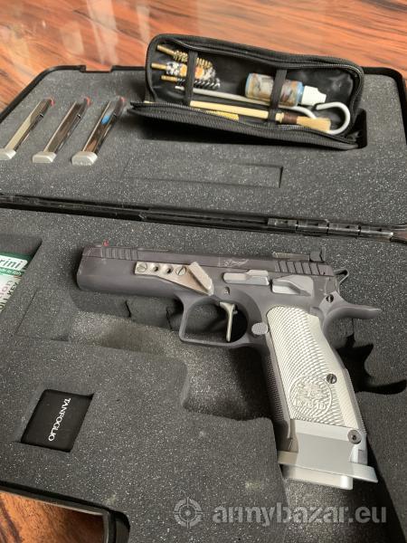 Opis: Tanfoglio Limited Custom Extreme 9 Para. Najpopularniejszy pistolet do IPSC klasy STANDARD. w komplecie 4 magazynki, wieszak. Przebieg około 15 tys. Lufa poligonalna posłuży kolejne kilkadziesiąt tysięcy. Pistolet sprawny. Dużo sprężynek, iglica, pazur wyciągu w komplecie.