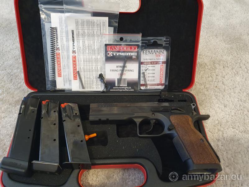 Opis: Sprzedam Tanfoglio Stock 3 w konfiguracji do IPSC Production Optic (bez kolimatora). Sprzęt super przygotowany do zawodów. Wymieniony sear + spust na extreme, reszta części dopasowana i wypolerowana, wszystko chodzi gładko, miękko i bez zgrzytów, w tej konfiguracji wystrzelał mistrzostwo polski ipsc production optics 2019. Przebieg pistoletu to max 5tys kulek - czyli dla poligonalnej lufy, tyle co nic, pistolet nosi delikatne ślady użytkowania m.in. od wieszaka. W cenie 3 magazynki (1 od CZ), płytka tonisystem (lub bez) do kolimatorów Burris, Vortex, Docter, Shield i podobnych. Dorzucam sprężyny oporopowrotne, kurka, iglicy do własnej konfiguracji broni oraz stokowy spust i przyrządy.