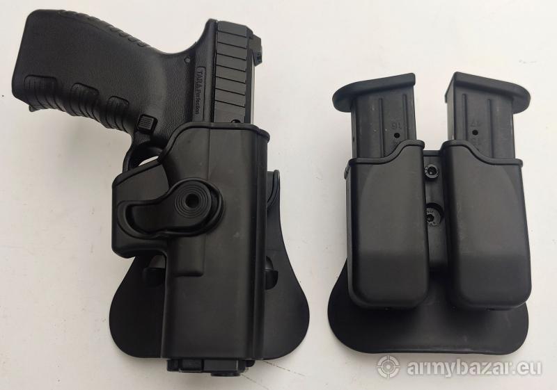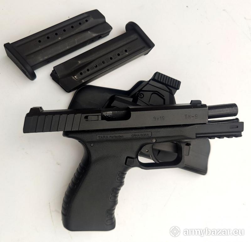 Opis: Do sprzedania Tara TM9 9x19. Pistolet z nastrzałem ok. 500 szt. Dotarty, technicznie bez zarzutu. Bez jakichkolwiek dysfunkcji czy choćby zacięć w toku użytkowania (przeciwnie - pracował na reelab, której nie chciał łykać Glock). Broń dobra do strzelania rekreacyjnego i na początek przygody ze strzelectwem, szczególnie do treningu pracy na spuście. Wymiarowo odpowiada G17, wiec osprzęt do glocka jest w większości kompatybilny. W komplecie z pistoletem dwa fabryczne magazynki. Ponadto dorzucam gratis kabury IWB i OWB oraz ladownicę na magi.