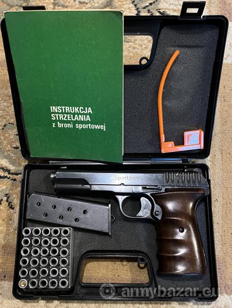 Opis: Sprzedam TT-tkę z Radomia w wersji "Sportowy" 22LR , rok produkcji 1955, z drewnianymi okładkami z anatomicznymi wybraniami pod palce. W zestawie 2 magazynki i 30 oryginalnych tulejek wkładkowych, plastikowa walizeczka i oryginalna instrukcja strzelania z broni sportowej z roku 1980. Odbiór osobisty pod Elblągiem. Promesa