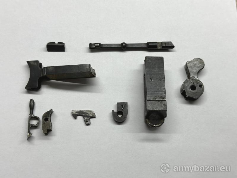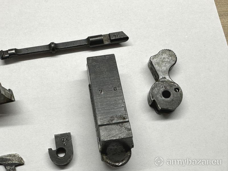 Opis: Części do prototypowego egzemplarza pistoletu VIS wz. 32. Wojsko zamówiło 100 sztuk pistoletów VIS wz. 32 partii próbnej, które miały zostać poddane testom w jednostkach wojskowych. Do obecnych czasów znane jest jedynie 7 zachowanych egzemplarzy na całym świecie. Zbiór części jakie posiadam pochodzą z jednego egzemplarza, dokładnie o numerze 76! Jest to 9 elementów, 4 z nich są numerowane. Na częściach jest widoczne wiele cech fabrycznych. Wszystkie części różnią się minimalnie od tych z wersji regularnej pistoletu VIS wz. 35. Charakterystyczny kurek bez otworu, szczerbinka z kwadratowym wycięciem, przerywacz i zaczep kurka bez obsługi dźwigni decocera. Proszę o propozycję cenowe na email.