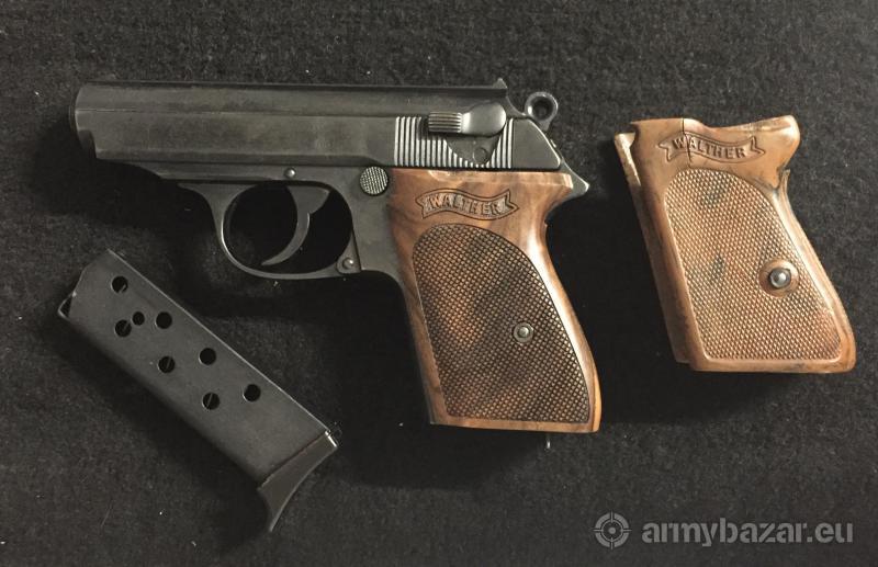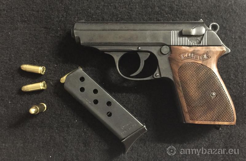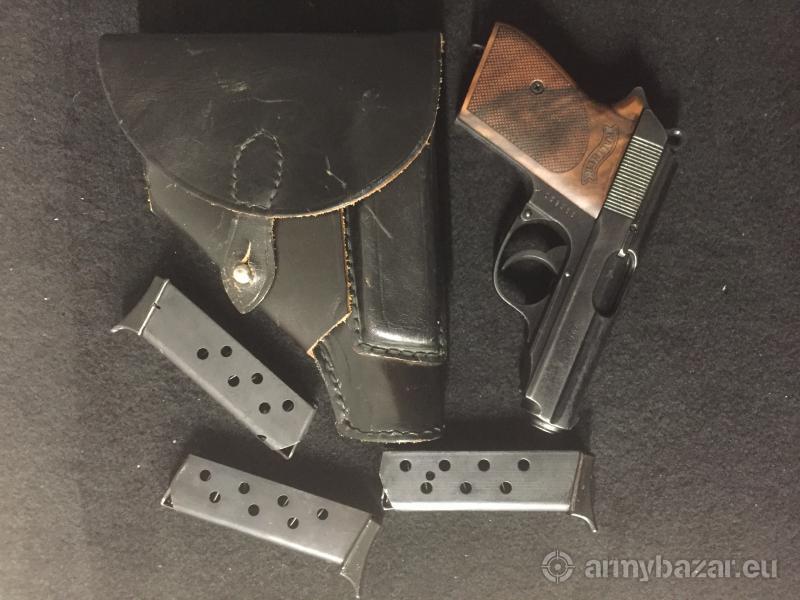 Opis: Walther PPK kal. 7,65. Walther rok produkcj 1940r, widoczne gapy nazistowska wrona nad N... w konfiguracji z numerem oznacza drugą połowę 1940 roku. W komplecie kabura, 3 magazynki ze stopką, dwa komplety okładzin jedne oryginalne, a drugie użytkowe. Stan ogólny bardzo ładny lufy również.