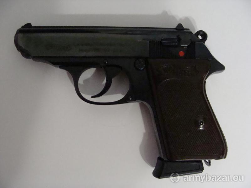 Opis: Klasyczna piękność - niemiecki Walther PPK w kal. 22 lr z Waffenfabrik Ulm. W komplecie oryginalne plastikowe pudełko oraz jeden magazynek na 10 nabojów (niestety raczej nieoryginalny, chyba amerykański). Stan praktycznie idealny, doskonale zachowana piękna czarna oksyda. Lufa lustro. Niewiele strzelany, może ok. 100-150 sztuk amunicji (służył głównie do napawania się). Miękki spust pozwala zachować dobre skupienie na rozsądną odległość. Super fajny pistolet do rekreacyjnego strzelania, jak również ze względu na małe gabaryty - do skrytego noszenia (np. w kieszeni spodni). Szczerze polecam, również ze względu na kaliber, który nie drenuje kieszeni :-} Do obejrzenia w Białymstoku.