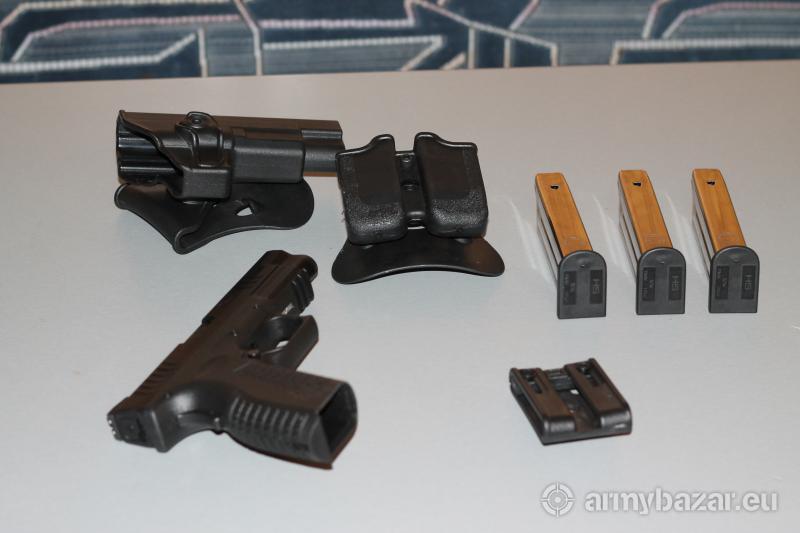 Opis: Rok produkcji 2017. Przebieg ok. 2000 szt. Stan bardzo dobry. W cenie kabura, ładownica i adapter do pasa taktycznego IMI Defense.