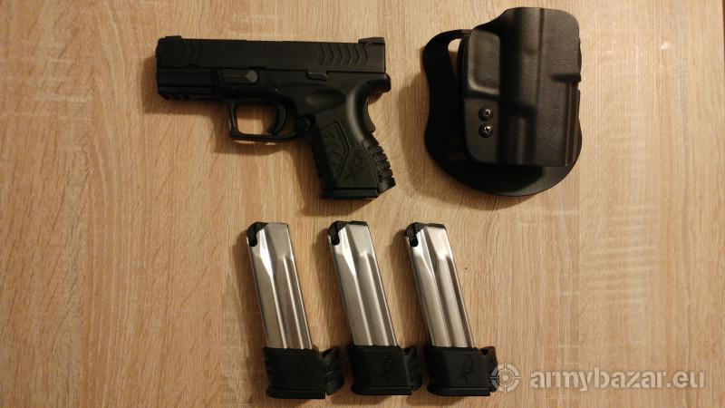 Opis: Pistolet na gwarancji, kupiony pod koniec września.Stan idealny.Świetny pistolet do skrytego noszenia.Kabura bladetech i 4 magazynki.