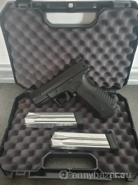 Opis: Chętnie zamienię pistolet HS SF19 3.8 na jego mniejszego braciszka czyli h11 Hellcat. Wersja 3.8 posiada pełnowymiarowy chwyt mieszczący magazynek na 19szt.