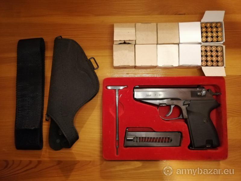 Opis: Sprzedam zestaw składający się z: 1) pistoletu P-83 "Wanad" w stanie bardzo dobrym; 2) dwóch zgodnych numerycznie magazynków; 3) oryginalnego pudełka Zakładów Metalowych Łucznik; 4) materiałowej kabury na ww. pistolet; 5) ok. 150 szt. amunicji 9x18 Makarowa. Cena zestawu: 2.700 zł